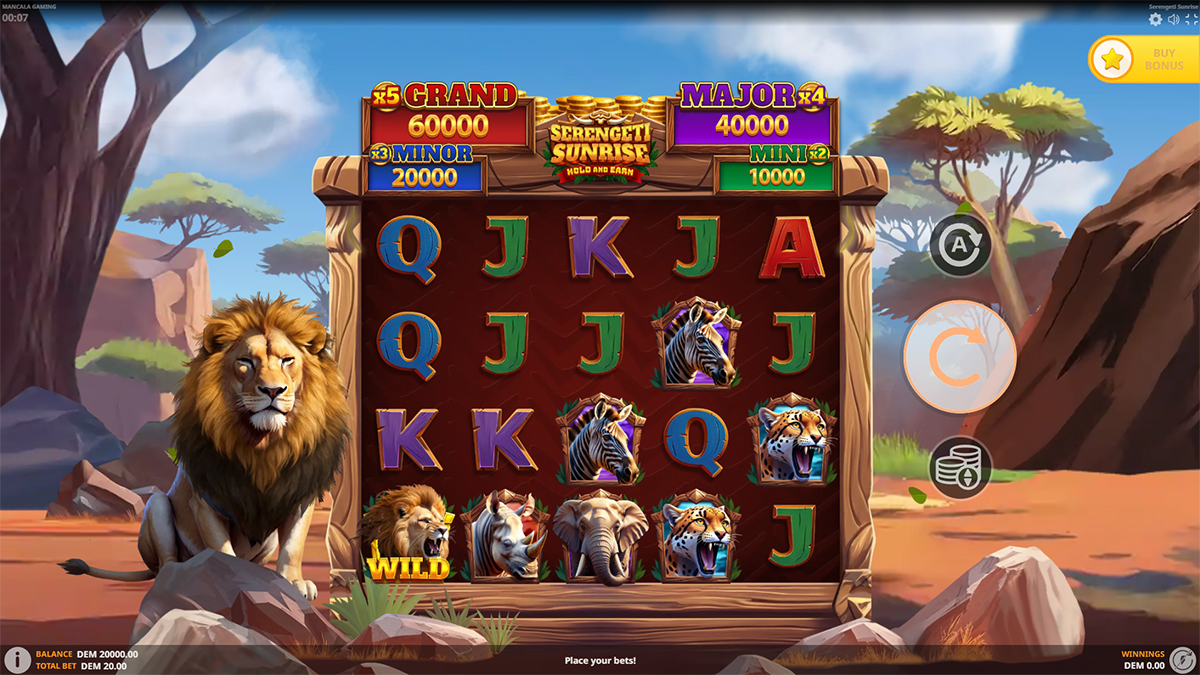 The demo version of Serengeti Sunrise provides players with an excellent opportunity to explore the game’s mechanics, pacing, and bonus potential without risking their bankroll. It allows users to familiarize themselves with the Hold and Win feature, understand how Collector interactions work, and practice identifying optimal betting levels based on volatility and personal comfort. Through hands-on exploration, players can test strategies, observe payout behavior, and enjoy the thematic immersion before committing to real-money wagers. This makes the demo mode especially valuable for those new to Hold and Win slots or players who want a no-pressure way to evaluate the game’s high-volatility dynamics.