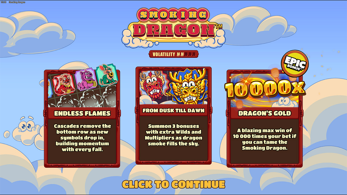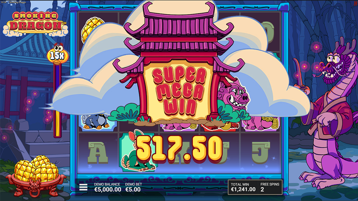 A demo version of Smoking Dragon is available, allowing players to experience the full game using virtual credits instead of real money. This version is ideal for learning how the cascading rows, Wild multipliers, Dragon Eggs, and bonus rounds function without any financial risk.