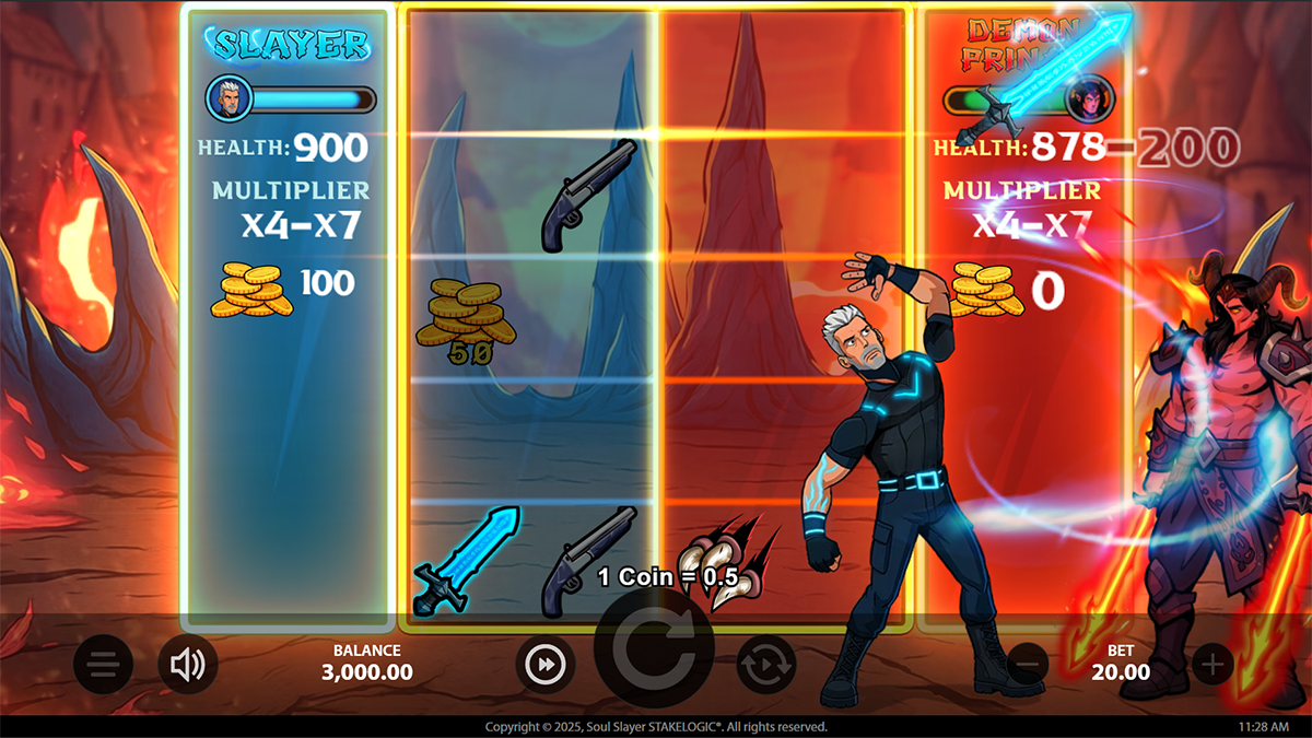 Soul Slayer by Stakelogic is an intense and imaginative online slot that drops players into a world overrun by demonic invaders. Acting as Earth’s last line of defense, you step into the boots of the Slayer, a fierce warrior armed with blades, guns, and divine rage to cut through hordes of hellish creatures. The game beautifully captures the chaos and thrill of battle, immersing players in a universe where the streets of a cartoonish city are drenched in infernal energy and danger lurks behind every portal. Each spin feels like part of an ongoing war, as the Slayer cleaves demons apart, transforming them into valuable Wilds and Multiplier symbols. From its striking art style reminiscent of nostalgic RPGs to the adrenaline-filled Combat Bonus Game, Soul Slayer blends cinematic storytelling with dynamic mechanics for an unforgettable slot experience that’s equal parts action-packed and rewarding.