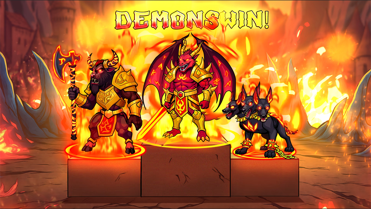 A battle-based feature triggered by Scatters where players fight demons for Coin prizes and multipliers.