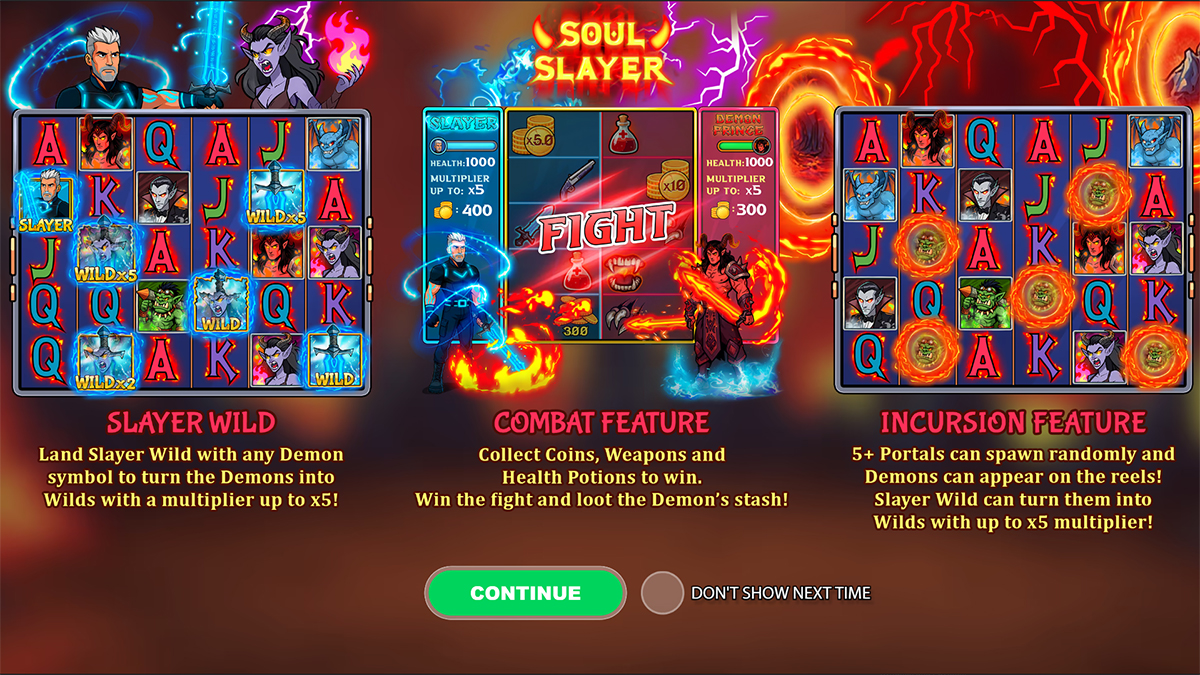 Soul Slayer’s features amplify both the thematic and mechanical excitement of the game. Each one—whether it’s the Wild mechanics, Incursion, Combat Bonus Game, Feature Buy, or Super Stake—serves a unique role in maintaining high engagement. These features combine traditional slot rewards with fresh, action-packed mechanics, ensuring the experience feels dynamic and ever-changing.