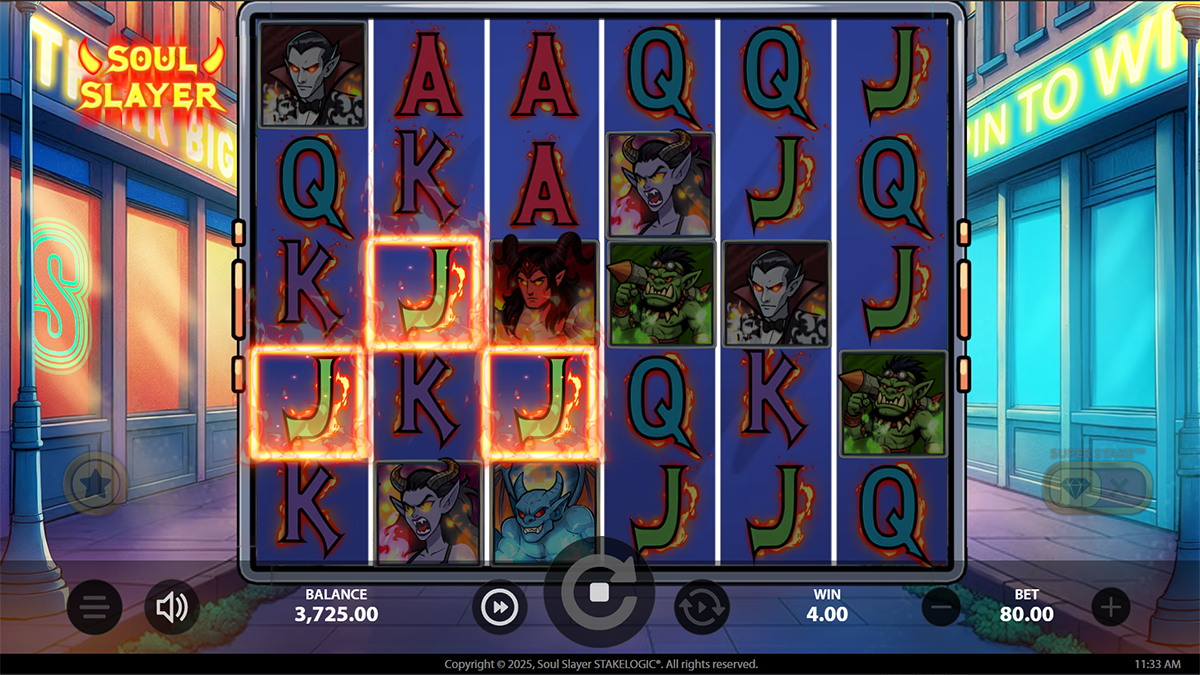 Soul Slayer is a high-volatility slot, meaning it delivers larger wins but less frequently. This makes the game ideal for players who prefer intense, high-stakes gameplay and are willing to face risk for the chance of major rewards. Its volatility complements the game’s thrilling demon-slaying theme, adding tension and excitement to every spin.