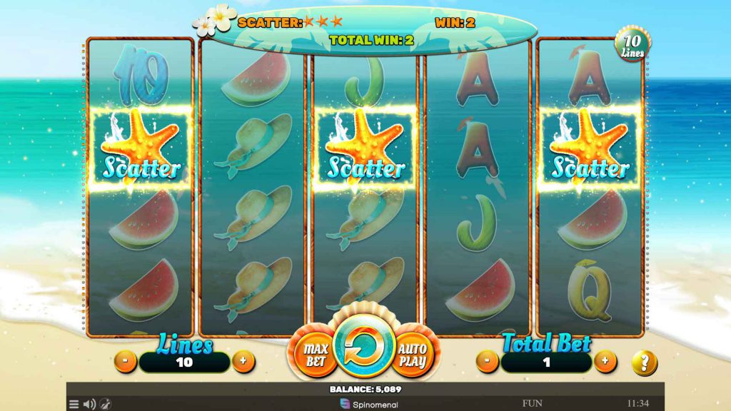 The reels of Summer of Luck feature a mix of thematic and classic symbols that tie into its ocean and summer aesthetic. Lower-value icons include the 10, J, Q, K, and A, offering modest returns for combinations of three or more. Higher payouts come from symbols like the melon, sunglasses, and hat, each reflecting the game’s sunny vibe and rewarding players with heftier multipliers when aligned. Stacked wilds stand out, capable of covering full reels and substituting for other symbols to complete wins, while the scatter delivers payouts independent of payline positions. With 10 paid symbols in total, the slot strikes a balance between frequent smaller wins and the chance for larger rewards, keeping the gameplay visually cohesive and engaging.