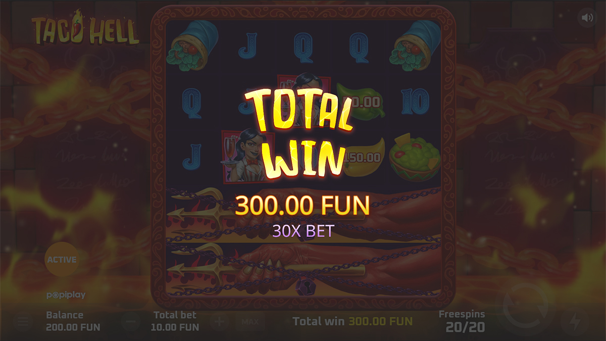 The maximum win in Taco Hell is capped at 4,320x the player’s stake. This high payout potential is mainly achieved through the Free Spins round and the progressive multiplier system. Reaching this win usually requires a strong combination of collected Pepper values and a fully built multiplier.
