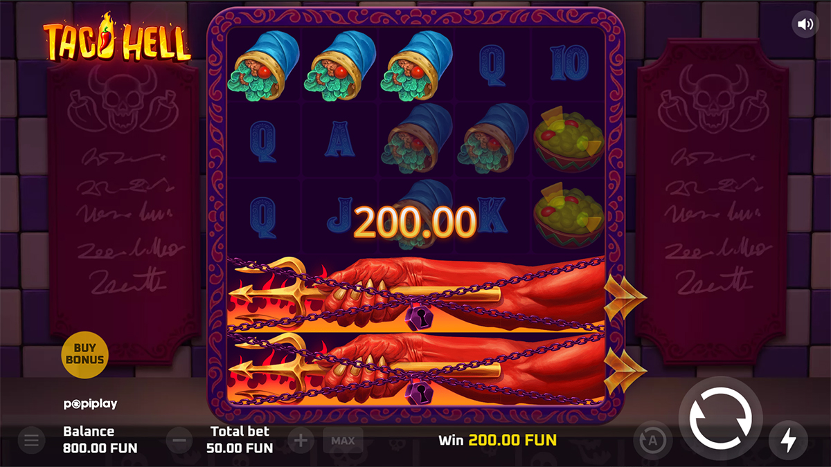 Taco Hell offers a flexible payline system with 5, 10, or 20 paylines depending on the selected grid layout. Players can switch between these configurations using the Devil Hand mechanic. This flexibility allows users to tailor the game’s hit frequency and payout behavior to their preferred playstyle.