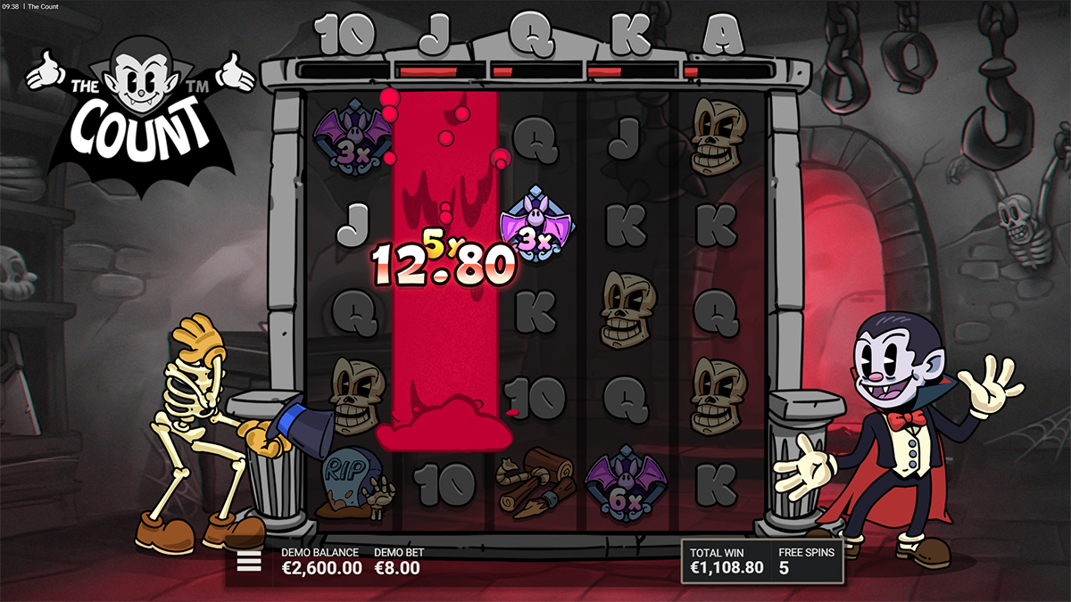 The special symbols in The Count are the Wild Bat, Expanded Bloody Wild, Epic Wild Bat, and the Scatter. The Wild Bat and Bloody Wilds act as substitutes for all paying symbols while also carrying multipliers ranging from x2 to x500. The Epic Wild Bat is particularly powerful, as it spreads its multiplier value to all other wilds on the grid, amplifying win potential dramatically. Meanwhile, Scatter symbols trigger the three different free spin bonus games, unlocking the slot’s most rewarding phases. Together, these symbols drive the game’s most exhilarating moments, ensuring every spin can shift dramatically from ordinary to extraordinary.