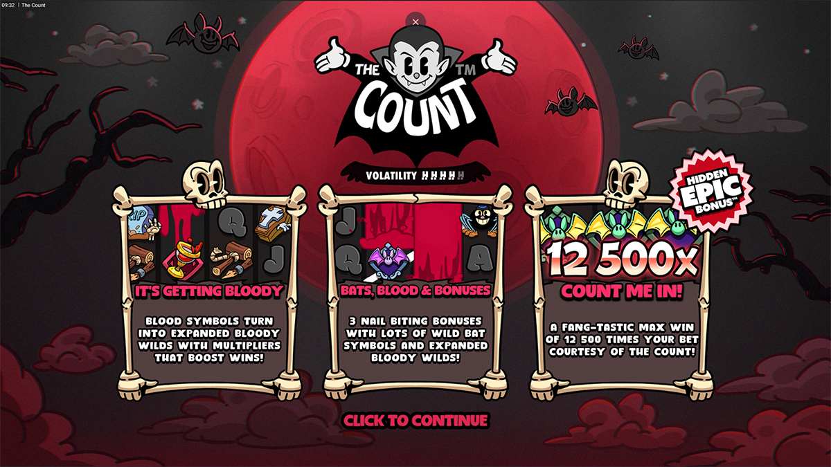 Count on Blood Bonus Hidden bonus round with guaranteed 5 Wild Bats per spin and more Epic Wild Bat appearances.
