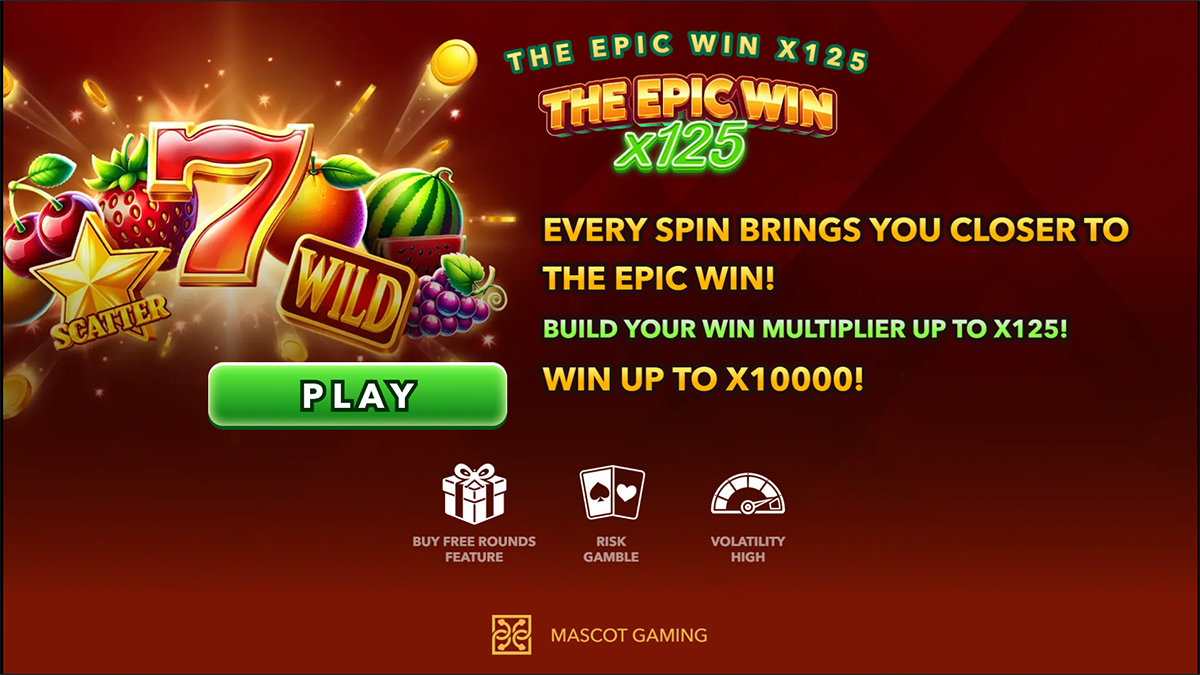 The Epic Win x125 is classified as a high-volatility slot. This means wins may be less frequent, but they can be significantly larger when they do occur. The escalating win multiplier further amplifies this volatility, making gameplay more intense and suspenseful.