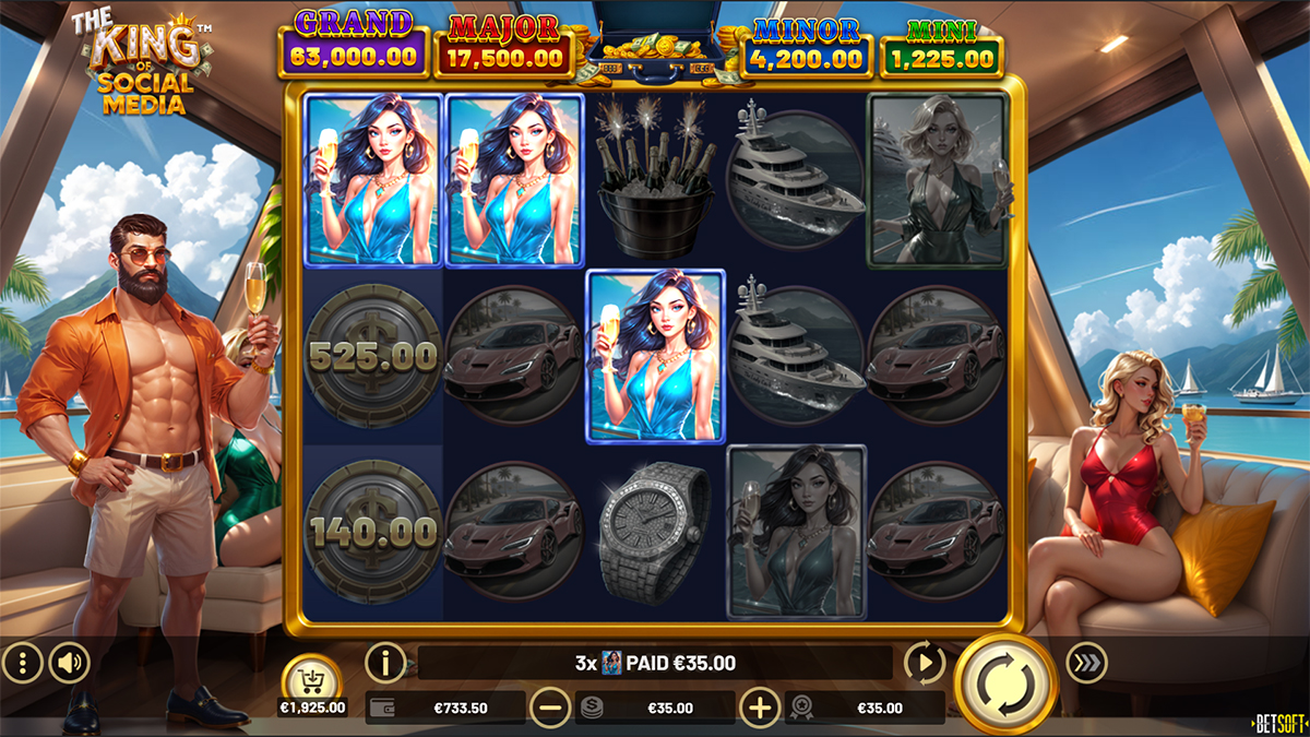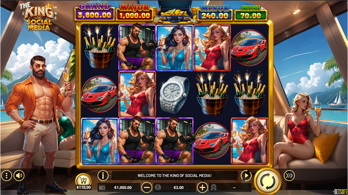 The King of Social Media is a visually striking slot from Betsoft that blends luxury culture with modern influencer aesthetics, creating a game world inspired by yachts, high-end lifestyles, and viral fame. From the moment players load the slot, the atmosphere emphasizes glamour and status, reinforcing the theme of digital stardom and online success. The design uses vibrant colors, polished animations, and energetic sound effects to simulate the fast-paced excitement of social media attention. Beyond visuals, the slot focuses heavily on bonus-driven gameplay, encouraging players to chase big multipliers and premium rewards through special symbols and interactive features. With a strong emphasis on collection mechanics and bonus triggers, the game aims to keep sessions dynamic and engaging, offering both entertainment value and high payout potential for players who enjoy feature-rich video slots.