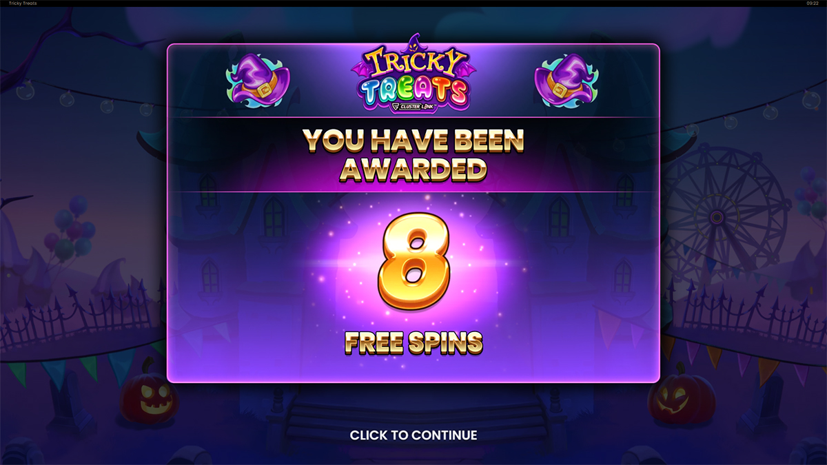 Yes, Tricky Treats includes a thrilling Free Spins feature called the Cluster Link Bonus. It activates when you land three or more Wild Scatter symbols, awarding between six and twelve free spins depending on the number of scatters. During this round, special reels appear with only premium symbols, multipliers, and instant prizes for enhanced win potential.