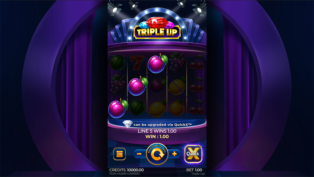 Triple Up is classified as a medium-volatility slot, which means it aims to strike a balance between frequent smaller wins and less frequent but more substantial payouts. This volatility level is ideal for players who prefer a consistent flow of action without long dry spells, while still retaining the possibility of hitting impactful combinations through expanding wilds and multipliers. Medium volatility typically supports longer play sessions, as bankroll fluctuations tend to be more manageable compared to high-volatility games. At the same time, the presence of the QuickX™ feature adds occasional spikes in win potential, keeping gameplay exciting and unpredictable. Overall, this volatility profile makes Triple Up suitable for a broad audience, including casual players and those seeking moderate risk with rewarding gameplay moments.
