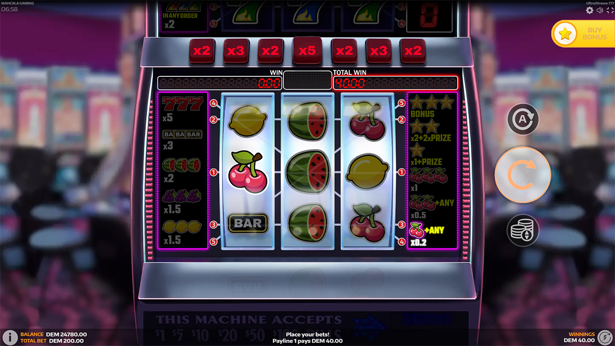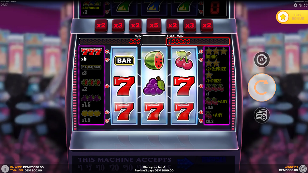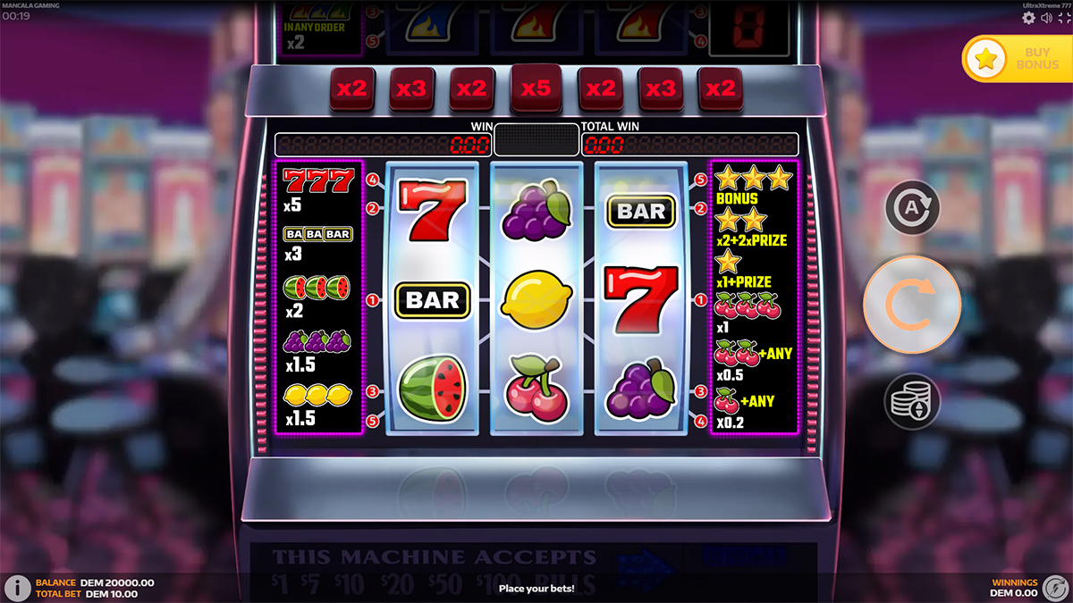 UltraXtreme 777 combines simplicity with rewarding twists through its features. Wilds help create winning combinations, scatters add extra payouts, and multipliers amplify the excitement by boosting winnings dramatically. These features work seamlessly within the 3×3 setup, ensuring fast but engaging gameplay.