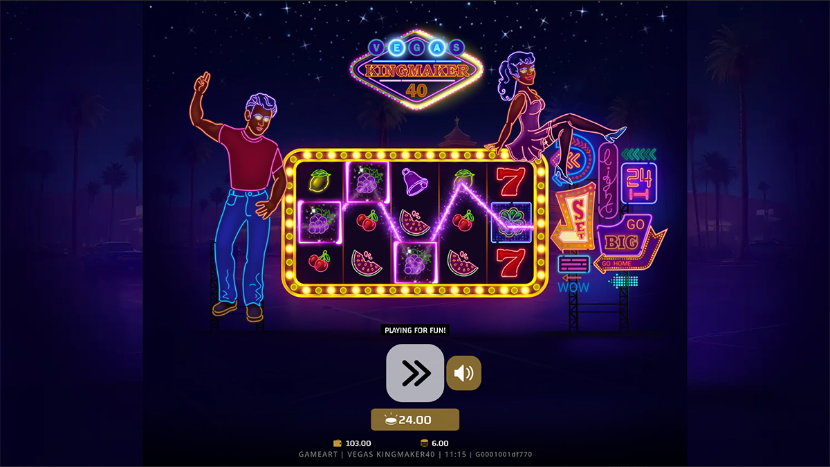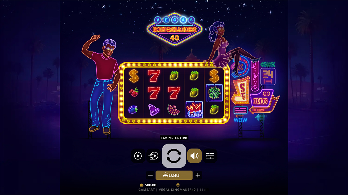 GameArt has steadily built a reputation in the iGaming industry for crafting slots that are visually stunning and mechanically engaging. Known for blending artistic detail with player-focused design, the studio often produces games that fuse classical slot foundations with bold modern features. Their catalog ranges from mythology-inspired epics to fruit machines, and they consistently demonstrate an ability to adapt themes to current trends without losing the timeless essence of slot gaming. In Vegas Kingmaker 40, GameArt leans on its expertise in delivering crisp neon visuals and intuitive gameplay, staying faithful to the recognizable appeal of Vegas-style slots while layering in features that ensure replayability. By choosing to emphasize clarity, fast-paced mechanics, and rewarding gameplay loops, the developer continues to show why they are regarded as a studio that understands the balance between tradition and innovation in slot design.
