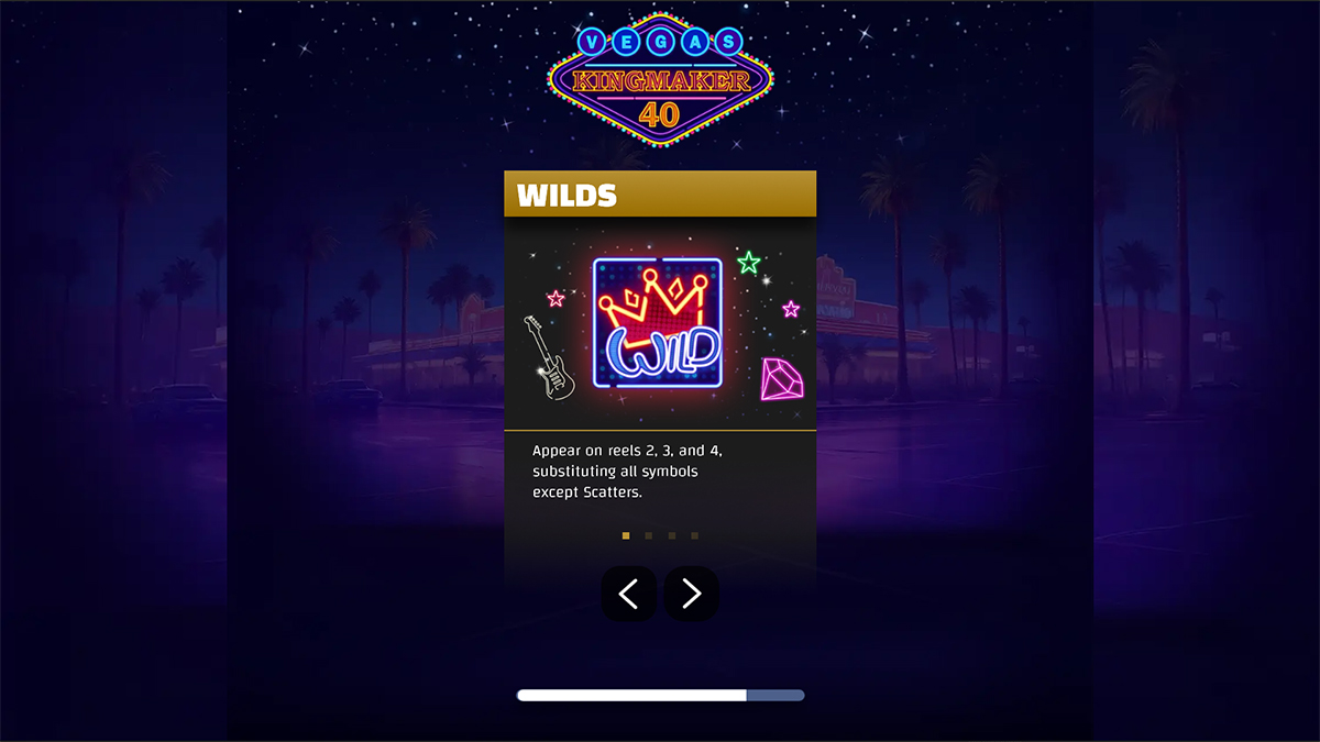 Special symbols are central to the excitement of Vegas Kingmaker 40, as they unlock the game’s unique mechanics. The Wild symbol, represented by a neon Crown, is the most impactful, appearing on reels 2, 3, and 4 and expanding to fill the entire reel if it can form or enhance a winning combination. This dramatically increases the potential for multiple payline wins. The Scatter symbol, shown as a neon Horseshoe, is equally important, as landing three of them on reels 1, 3, and 5 awards an instant payout, independent of paylines. These symbols elevate the slot beyond its classic roots, introducing dynamic twists that keep players invested.