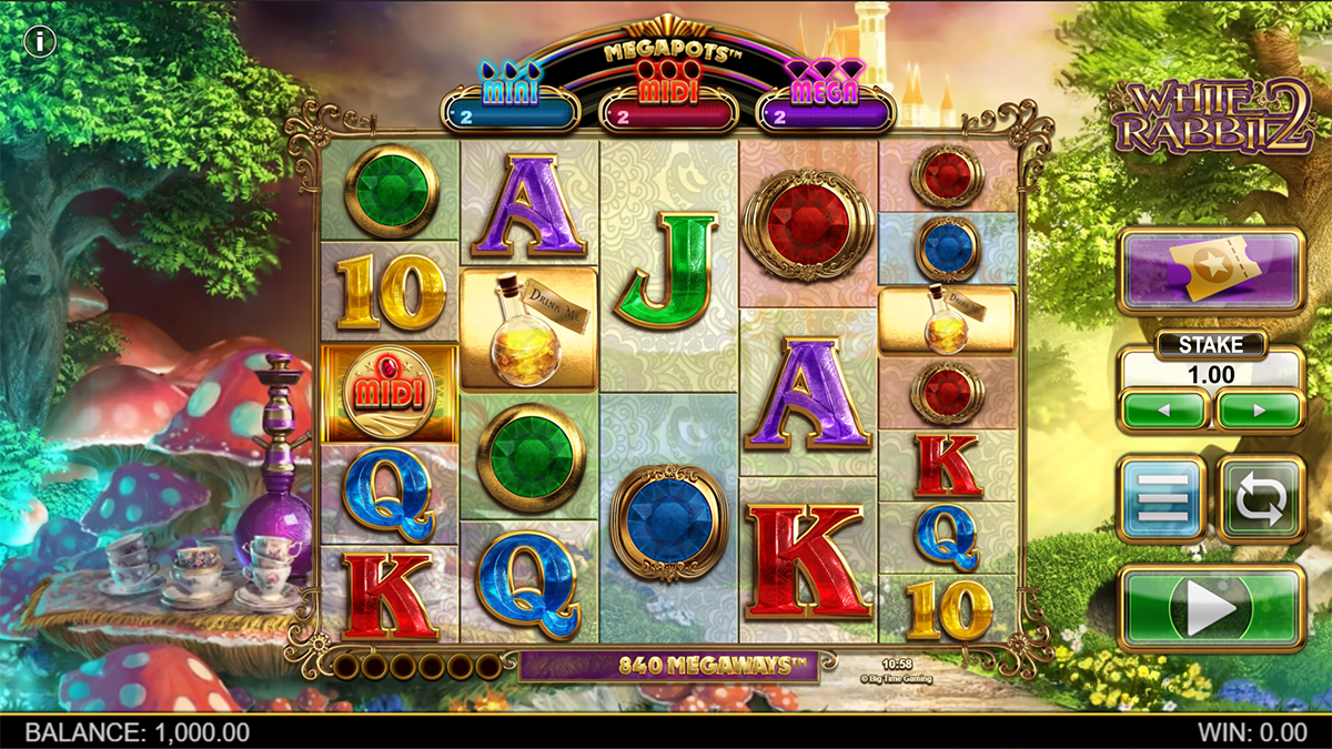 White Rabbit 2 delivers a bold and exhilarating evolution of the original hit, blending charming fantasy elements with high-intensity mechanics that work beautifully together. The game’s standout features—such as the Megapots™ system, character-enhanced Hold and Spin, and deeply rewarding Expanding Free Spins—ensure that players always have something exciting to anticipate. Its generous max win and tight integration of theme and gameplay elevate the experience, making the slot feel premium, refined, and endlessly replayable. Whether you’re drawn in by the whimsical Wonderland theme or the serious potential hidden behind every spin, this slot succeeds in creating a deeply satisfying and memorable gaming experience that stands out in Big Time Gaming’s already impressive catalog.