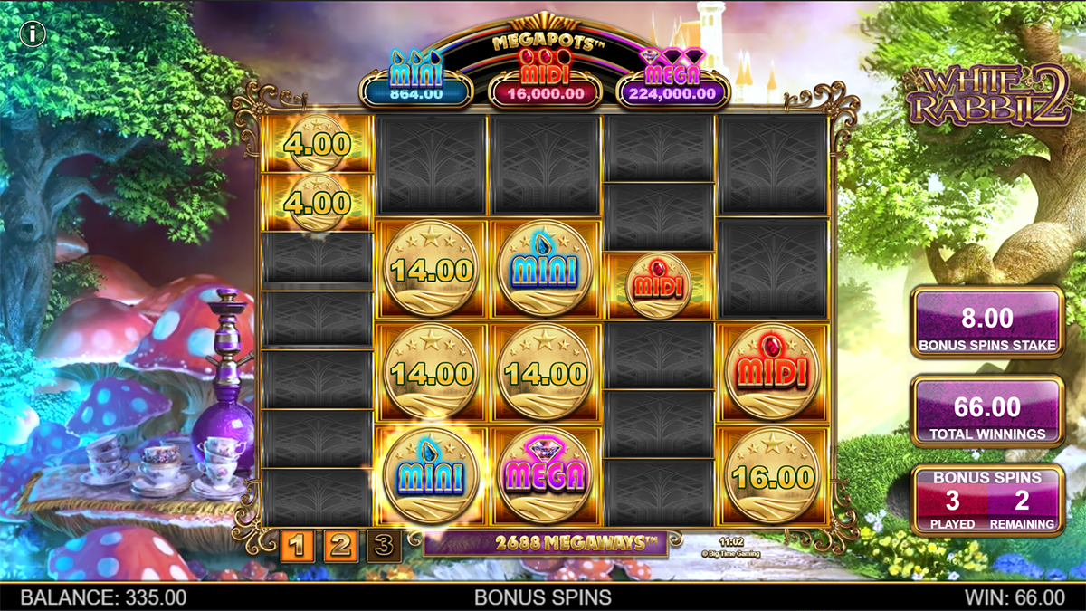 White Rabbit 2 embraces a high-volatility profile, meaning players should expect moments of quiet buildup punctuated by dramatic bursts of action when features align. This intensity suits the slot’s expanding reels and Megapots mechanics, both of which thrive on anticipation and powerful reward spikes. High volatility also means players who value long-term thrill over constant low-level payouts will feel right at home. When the right combination hits—such as a fully expanded reel triggering extra spins, or a Hold and Spin sequence enhanced with character abilities—the game can unleash electrifying payouts that mirror the chaotic spirit of Wonderland itself.