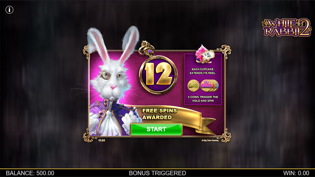 Yes, White Rabbit 2 includes a highly engaging Free Spins round that activates when 3 to 5 Scatter symbols appear. Once triggered, players begin a journey through expanding reels where Cupcakes add extra positions and fully extended reels reward additional free spins. This evolving bonus can retrigger up to five times, creating long, thrilling sessions.