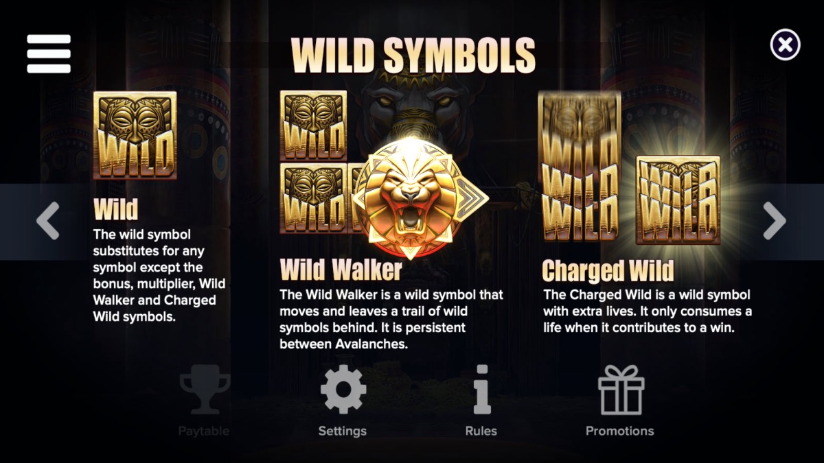 Wild Walker | A wild symbol that moves across the reels, leaving a trail of wilds that persist between avalanches. |