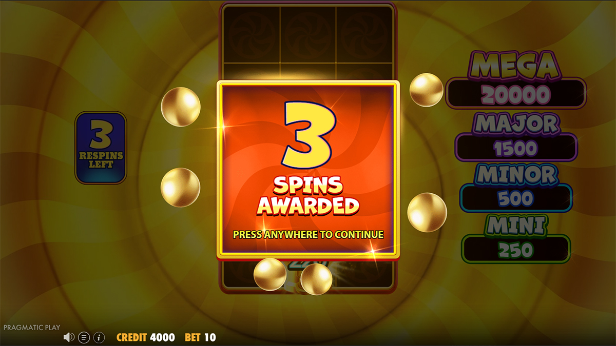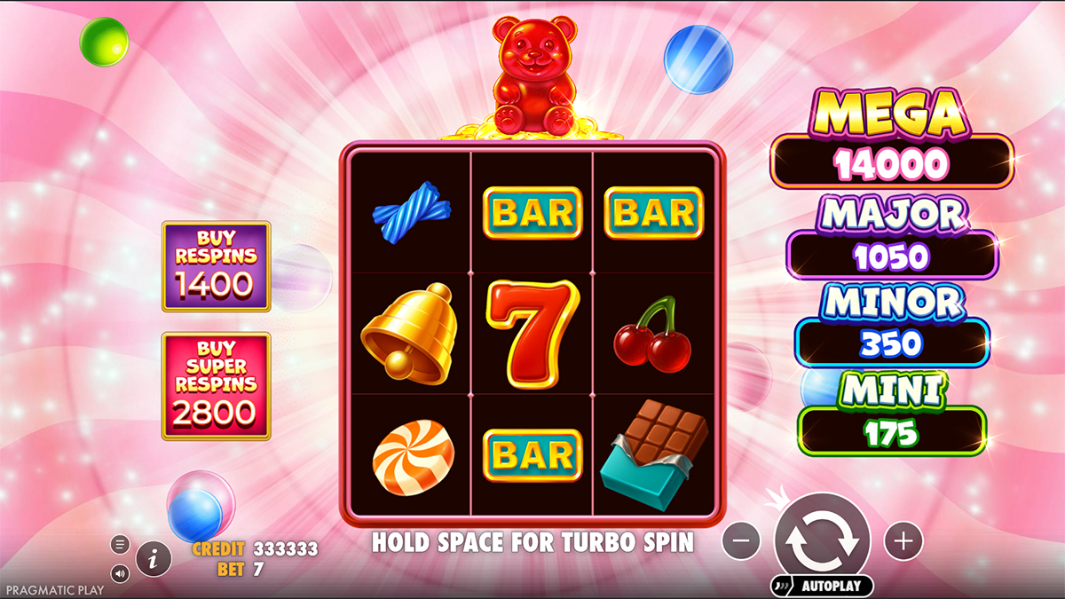 The game offers a maximum payout of 20,000x the player’s chosen bet, placing it among the higher-potential candy-themed slots. This win is achieved under rare conditions tied mainly to the respin features. Its significant ceiling reinforces the slot’s high-risk, high-reward nature.