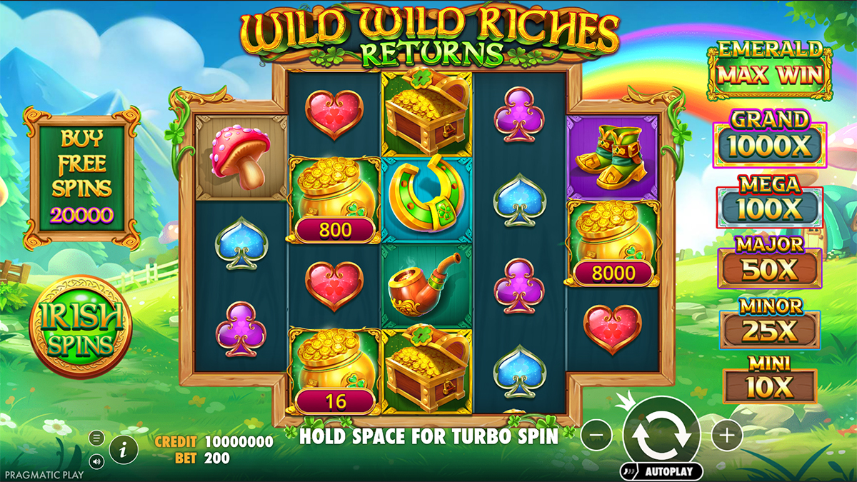 Wild Wild Riches Returns by Pragmatic Play stands as a fine example of how a developer can rejuvenate a familiar slot series without losing its signature appeal. The Irish-themed setting, with its rich green meadows, shimmering rainbows, and treasure-laden visuals, captures the essence of luck and charm that fans of the series have come to expect. Its new 3-4-4-4-3 reel configuration and 576 ways to win introduce a fresh layer of dynamism, while the combination of Money Collect mechanics, Irish Spins, and the thrilling Super Spin finale keeps the action compelling from start to finish. The balance between its vibrant design, medium volatility, and impressive 10,000x max win makes it an accessible and enjoyable slot for a wide range of players. Whether you’re here for the atmosphere, the features, or the potential to hit one of the big jackpot prizes, Wild Wild Riches Returns delivers an immersive, well-rounded experience that celebrates both luck and adventure in equal measure.