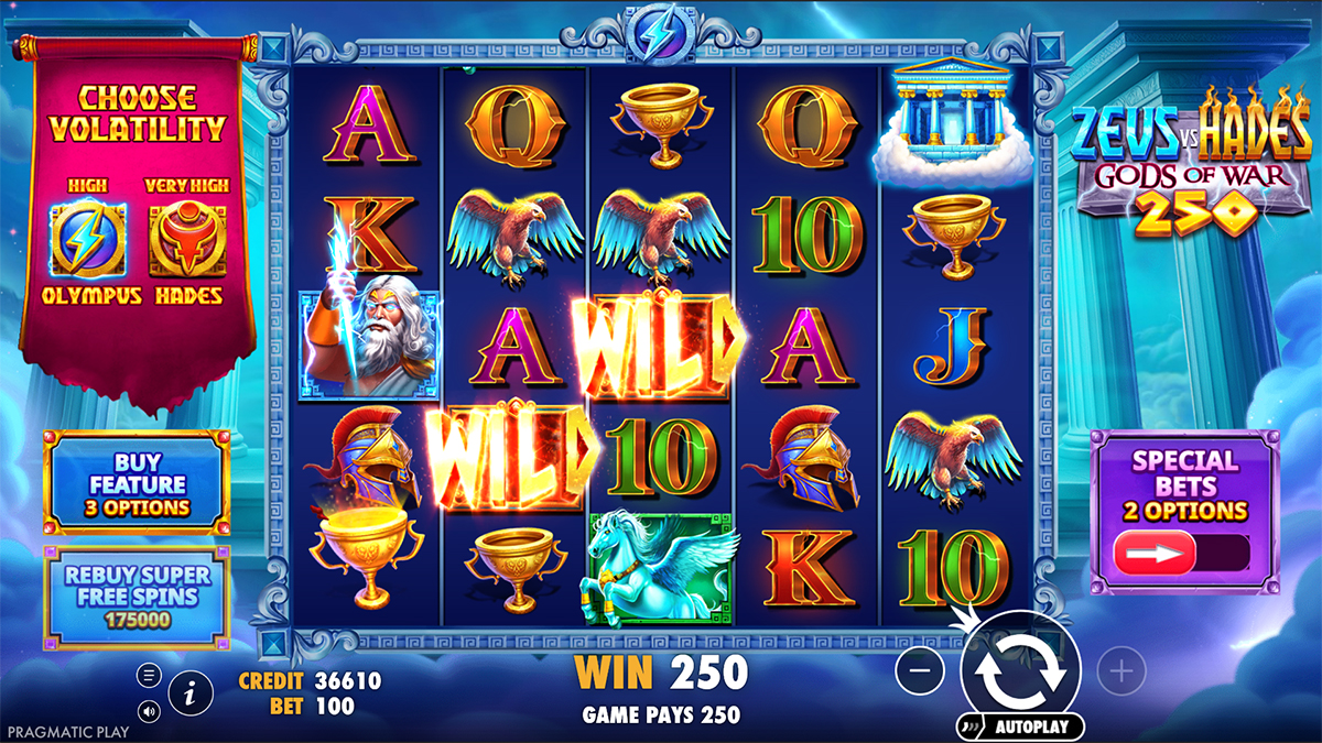 Zeus vs Hades Gods of War 250 Slot Volatility